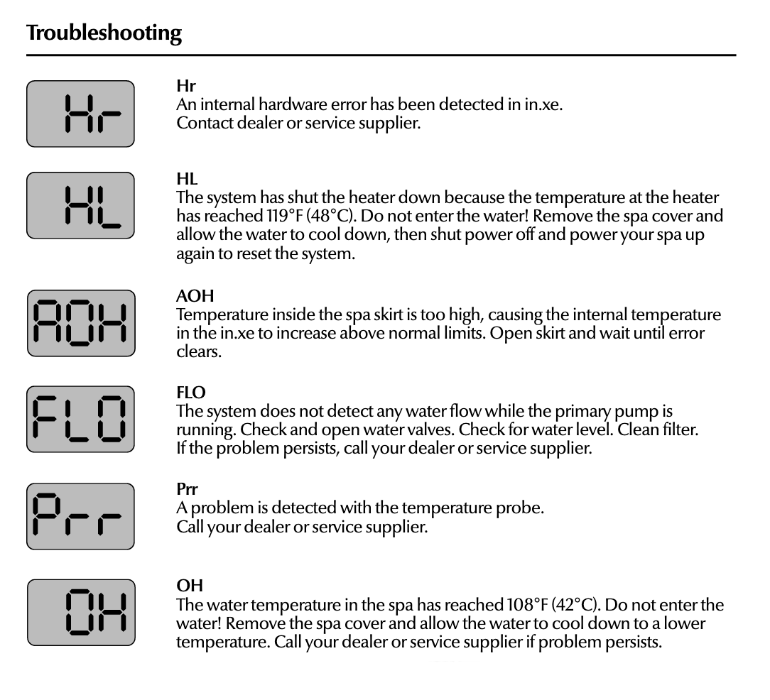 HL: The system has shut the heater down because the temperature at the heater has reached 119ºF (48ºC). Do not enter the water!