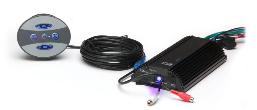 The unit accepts either audio streamed via Bluetooth connection or hard wired input via RCA input. The waterproof control pad is easily mounted as the body of the keypad is threaded and the large mounting nut is tightened against the back side of the mounting surface.