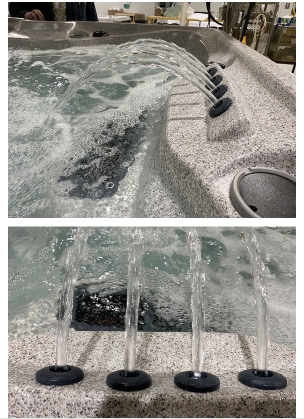 Arctic Spa's fountain jets are installed above the water surface to allow water to gently fall into the spa. Its therapeutically peaceful and allows a person to relax while listening to the water fall sounds.