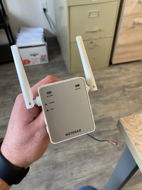 Remove the front cover of the pack using a Philips screwdriver and locate the Netgear WiFi extender.