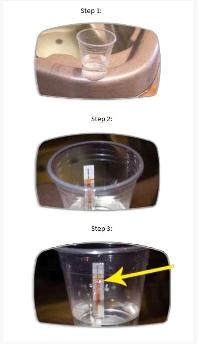 Take a sample of water from the spa in a small cup (about 25mm / 1” full).